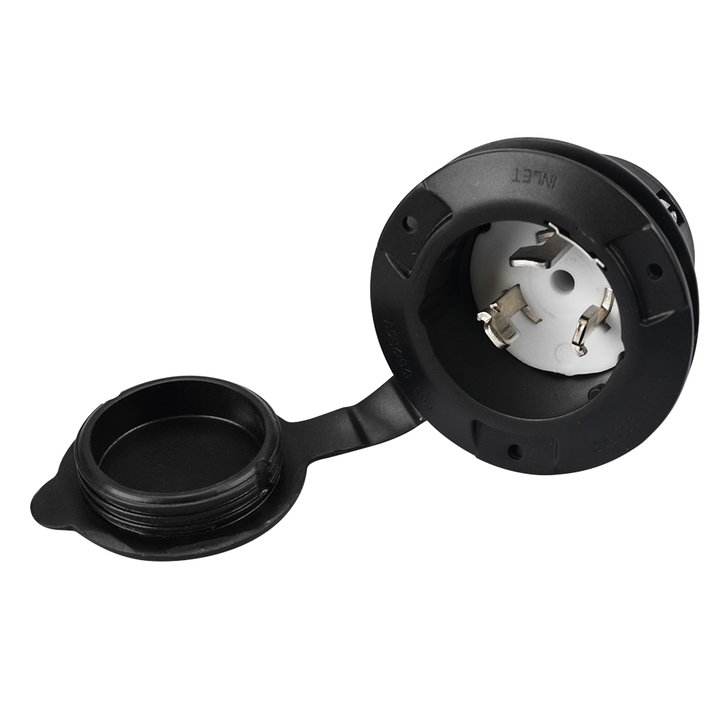 NEMA SS 2-50P ปลั๊กปิดพร้อมฝาปิด,หมุดสแตนเลส3ตัวสีดำปลั๊กไฟ RV กำลังไฟ125/250โวลต์จำนวน50แอมป์